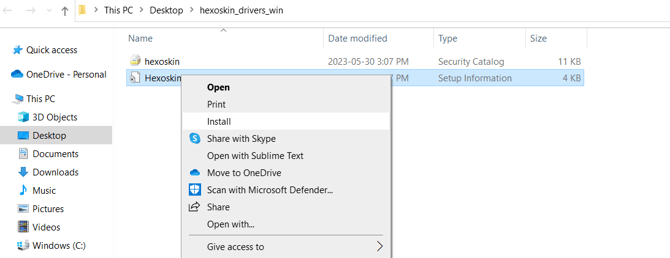 - Right-click on the Hexoskin INF file (Setup information) and Install