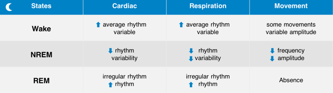 L'algorithme de sommeil validé par Hexoskin est basé sur des caractéristiques physiologiques documentées observées dans les différents stades du sommeil.