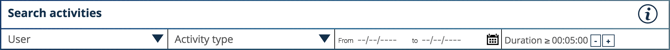 Dans la section «Search activities» (Recherche d'activités), vous pouvez restreindre votre recherche à un utilisateur, à un type d'activité, à une période de temps ou même à la durée de votre activité.