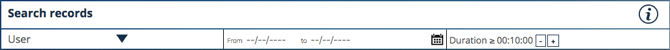 Dans la section «Search records» (Recherche d'enregistrements), vous pouvez restreindre votre recherche à un utilisateur, à une période de temps ou même à la durée de votre enregistrement.
