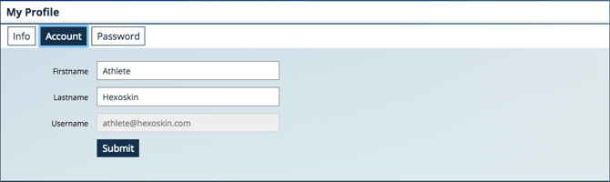 Dans la section «My Profile» (Mon Profil), cliquez sur «Info» et vous aurez accès à vos informations démographiques associées à votre compte. Ces informations sont cruciales pour les calculs de différentes métriques par Hexoskin. Assurez-vous qu'ils sont exacts. C'est aussi ici que vous pouvez mettre à jour votre poids au fil du temps si vous suivez un régime par exemple. Vous pourrez suivre la progression de votre perte de poids dans l'onglet «Health Status». Dans un contexte de recherche, les informations démographiques peuvent être saisies différemment pour respecter la vie privée et la confidentialité des participants (veuillez vous référer à «Gestion de plusieurs utilisateurs dans le cadre d'un projet de recherche» dans la section Articles).