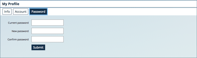 Dans la section «My Profile», cliquez sur «Password» (Mot de passe) et vous pourrez changer votre mot de passe à votre guise.